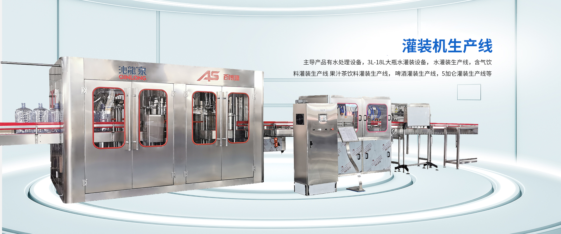 公司主導產品有水處理設備,3L-18L大瓶水灌裝機設備, 水灌裝生產線,含氣飲料灌裝生產線, 果汁茶飲料灌裝生產線, 啤酒灌裝生產線,5加侖灌裝生產線等。